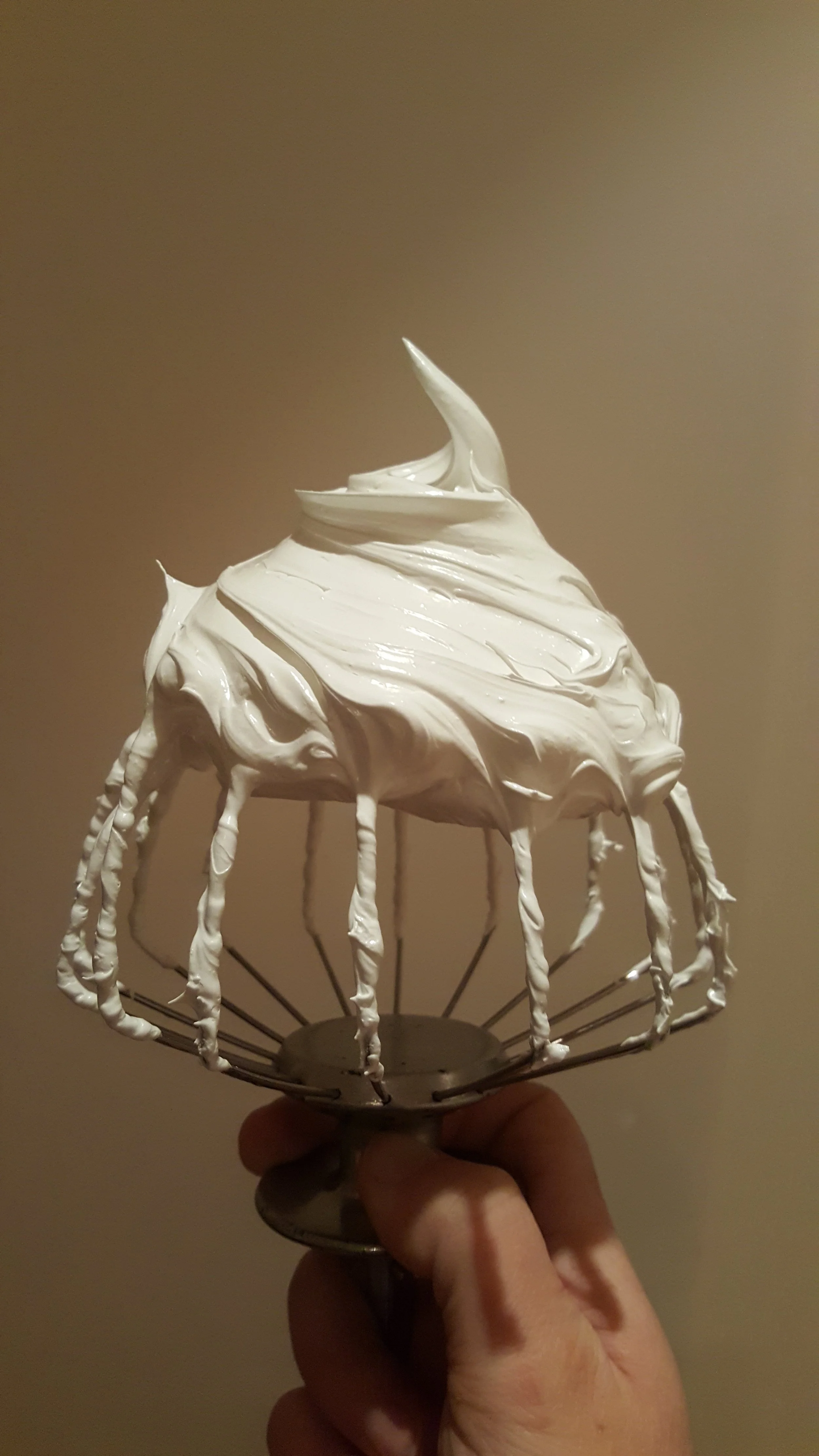 Boil water and sugar on medium heat. Egg whites in stand mixer with whisk attached, when sugar starts boiling turn on the mixer to medium speed. Turn up the heat. When it reaches 118C remove from the heat and pour slowly into egg whites. Turn up to high speed and continue whisking until cool. Add Vanilla when it’s nearly done.