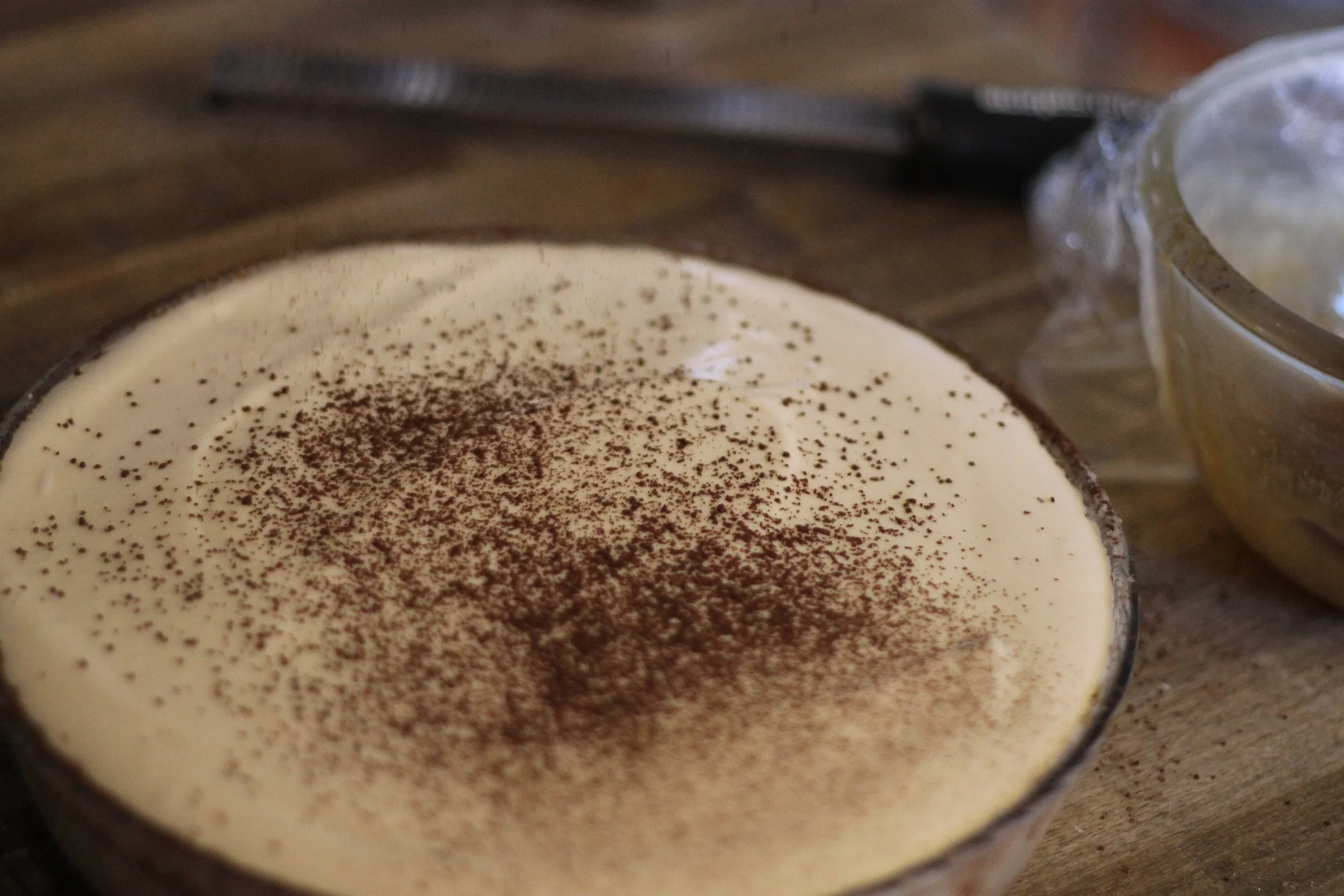 For this recipe I have used an aeropress to brew a cup of filter coffee. You could also brew a double shot of espresso and dilute it with boiling water to make up the weight. Stir in the sugar immediately to dissolve it, then mix in the marsala and cocoa powder. Set it aside for the final assembly.