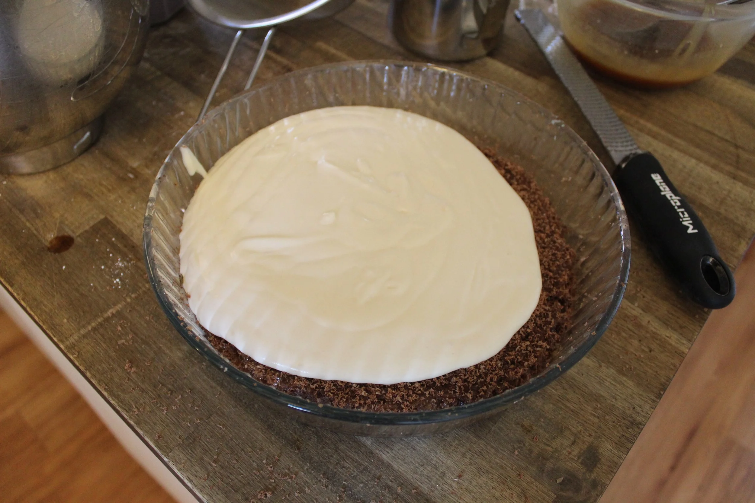 Make a dry caramel. Start with about 100g of caster sugar in a saucepan, heat on low until all of the sugar has dissolvedand you have a light amber colour (do not leave the kitchen!), gradually add in spoonfulls of sugar, waiting for it to melt before adding the next spoonful. When all the sugar is in just monitor it until it reaches a darker amber colour. Now stand back and pour in the marsala. Continue mixing until it is all combined with no lumps. Now add in the cream and mix until combined with no lumps. Remove from the heat. In a heatproof bowl place butter chunks and sea salt. Pour the caramel through a sieve into the bowl and stir to combine the butter and salt. Set it aside for the final assembly.